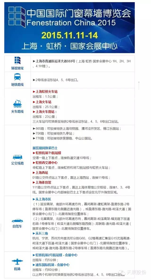 ?????? ?第十三届中国国际门窗幕墙博览会将于2015年11月11~14日在上海·虹桥·国家会展中心举行。天辰股份携数控双料锯切中心、数控四头组角生产线、数控仿型铣、高速四轴加工中心等高端设备强势参展,展位号H1.206,近四百平米的超大展位,天辰股份将倾力打造“中国门窗幕墙高效智能制造系统”。