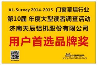 AL-Survey读者调查活动全称:中国幕墙网年度大型读者调查活动暨“我最喜爱品牌”评选活动。(以下简称AL-Survey)我司作为设备领域的领先企业,自上界获得用户首选品牌及市场表现奖之后,2015年再次凭借“天辰铝机”品牌在市场中的优异成绩,强势入围2015-2016年度第11届门窗幕墙品牌榜活动。通过近十万名活动参与者的票选,AL-Survey将成为我司年度市场品牌推广与产品销售、服务质量的晴雨表。