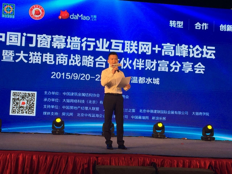 随着全球趋势的发展和政府的大力倡导,互联网+正如火如荼地席卷所有行业。如今电子信息化时代,互联网+的发展已经有目共睹。2015年9月20日-22日在北京温都水城,大猫电商与中国建筑金属结构协会、全联房地产商会共同举办了“2015中国门窗幕墙行业互联网+时代高峰论坛暨大猫电商战略合作伙伴财富分享会”。天辰股份作为合作会员单位,应邀参加了此次论坛会。