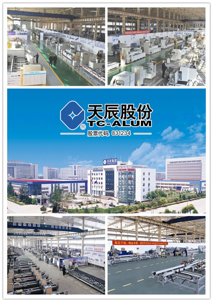 实业难做,要看怎么做!在经济新常态下的今天,企业的生存离不开以技术创新为驱动,紧跟国际潮流的发展思路。天辰股份作为行业旗舰品牌,山东省龙头企业,紧跟国内外门窗幕墙行业发展的潮流,致力于高端门窗幕墙设备的研发与制造。依托省级企业技术中心和强大的机械加工能力,先后研制出一系列具有自主知识产权的高端产品,铝机设备产销量、技术性能等均处于行业领先地位。近年来,随着建筑行业绿色环保、节能降耗标准的实施,天辰股份积极加大系统门窗设备的研发与制造,与国内外多个知名门窗系统进行合作,并针对系统门窗规模化推广以及工厂易复制等特点,率先研发出“门窗组装流水线”,再一次展示了天辰股份领先于行业水平的技术研发和创新能力。