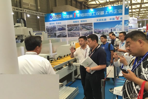 作为国内第一家铝材加工设备上市企业,天辰股份紧跟国内外工业铝行业发展潮流,始终致力于高端铝加工设备的研发与制造,此次天辰股份展出的铝模板锯冲自动生产线及数控五轴龙门加工中心获得了广大专业观众及业内参展企业的一致好评。尤其是自主研发的国内首台铝模板锯冲自动生产线,以其先进的设计理念、超高的生产效率及大量节省人工的自动化程度,广受赞誉。