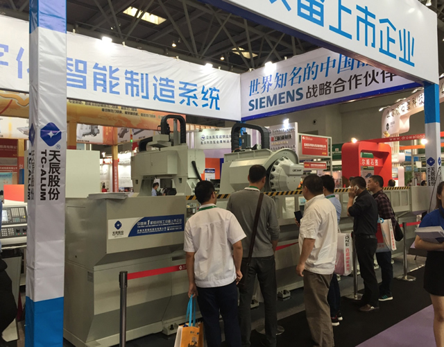 此次,天辰股份携带两台最新的铝机设备参展,分别是五轴龙门加工中心和高速三轴加工中心。所应用的行业主要是铝材的深加工领域,包括轨道交通、汽车轻量化、航空航天、船舶制造等广泛的铝材加工行业。其中,五轴龙门加工中心尤其适用于异形复杂工件的五轴联动加工。主要突出的优势是:加工效率高、精度高、自动化程度高、适用范围广,具有良好的性价比和超高的稳定性,代表了国内铝材专用加工机床的领先水平。展会现场,天辰股份展位人潮涌动,展出的设备获得了广大客户及业内参展企业的一致好评。展位号:N7馆7462,欢迎新老客户莅临参观。