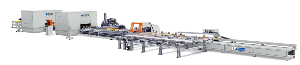 ⑸、操作安全可靠。自动化的作业模式,除上下料外,无需过多人为干预,锯切、冲孔及铣槽单元均有密封防护罩,确保操作人员安全。