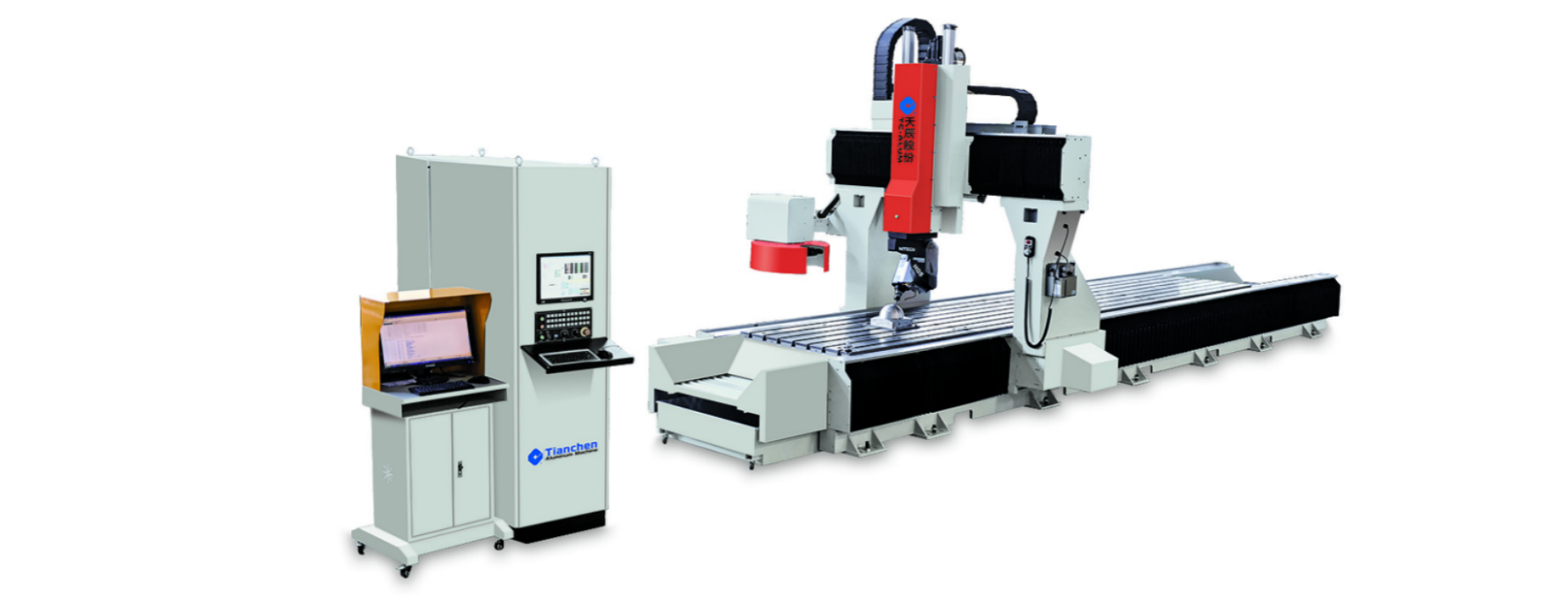 2,适用于对各类车辆、轨道交通、及各种工业铝材的三维空间五轴联动加工,可以完成各种铝型材上的孔、槽及轮廓形状等工艺内容;
