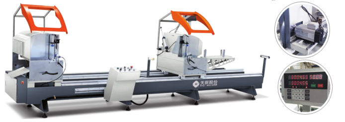 ☆?两锯头即可单独工作,也可同时工作,同时工作时,能一次切出所需要的长度及型材两端角度。
