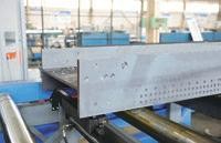 本机床主要用于对H型钢、槽钢、方管和矩形管等型钢进行钻孔加工,它主要应用于钢结构建筑、桥梁、电站、海洋石油井平台、塔桅等钢结构行业。机床一共采用4个主轴: 左单元和右单元各有1个主轴分别对型钢的两个翼板进行钻孔加工;上单元有2个主轴,对型钢的腹板进行钻孔加工。上单元能装夹2种不同直径的钻头,可以同时加工腹板上两种不同直径的孔。和腹面上只有单个主轴的机床相比,当腹板孔径变化时不需要手工更换钻头,因此该机床大大节省了换刀时间,显著提高了加工效率和加工精度。该机床是我公司专利产品。
